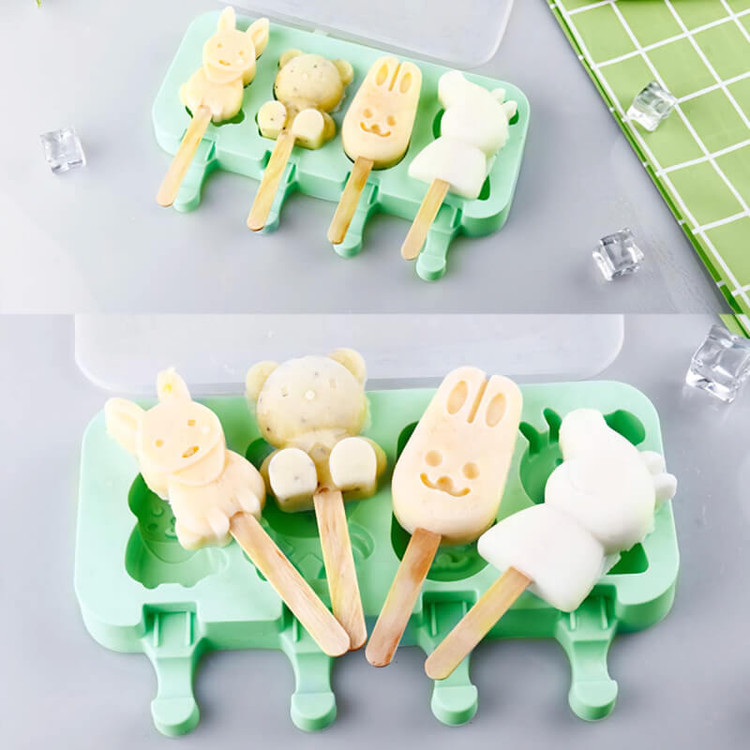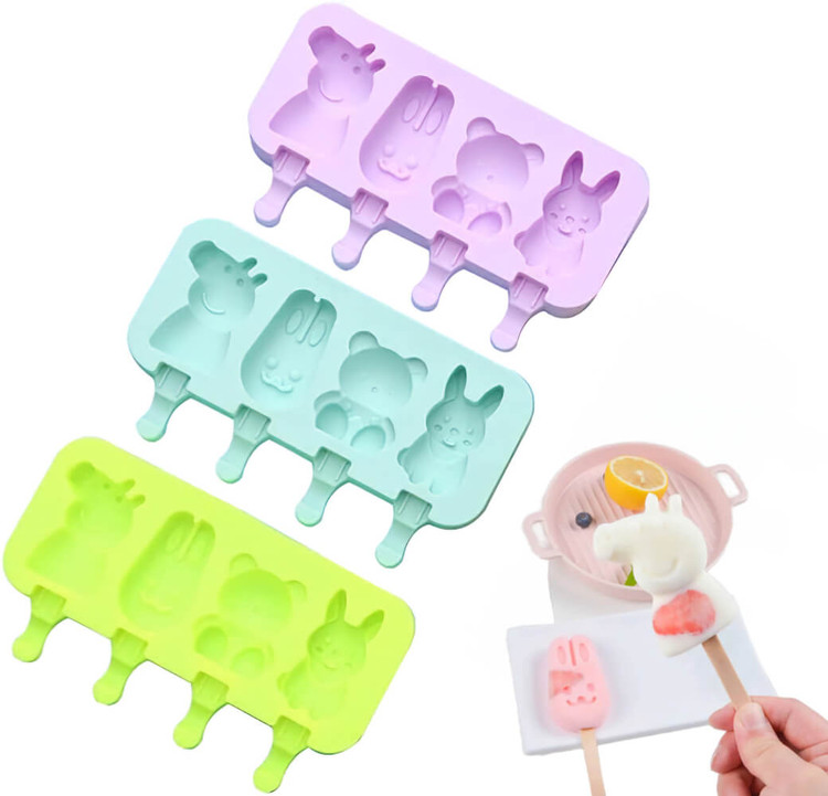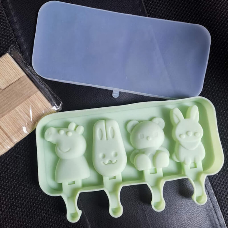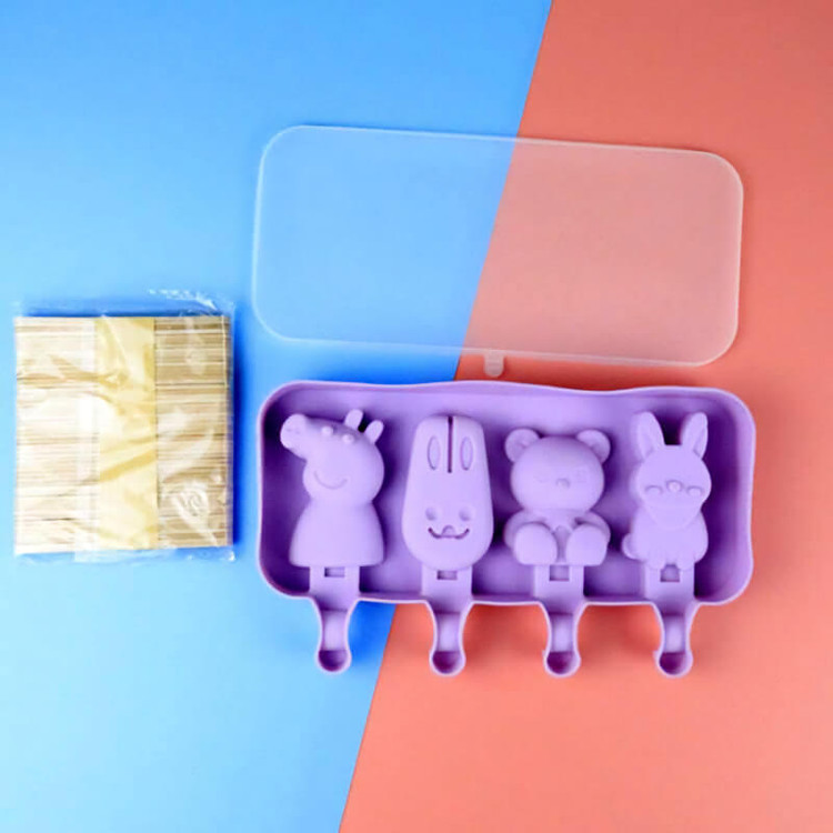 قالب بستنی سیلیکونی دارای گرید غذایی و اجازه تماس مستقیم با مواد خوراکی که با کیفیت بالا و قابلیت کشسانی بالا میتوان تا مدت های طولانی با انواع نوشیدنی بستنی های زیبا بسازید. این محصول به صورت 4 بستنی در هر قالب برای شما ارسال میشود که میتوانید در هر مرتبه فریز کردن 4 بستنی با اشکال عروسکی داشته باشید.