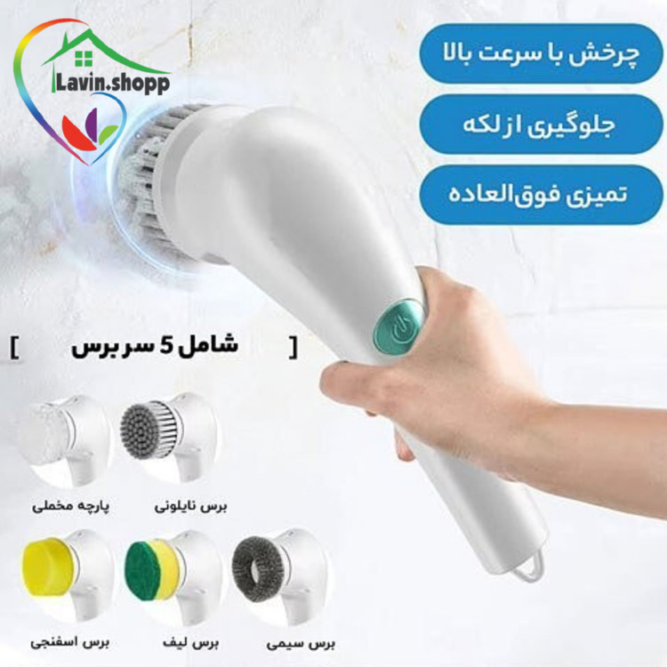 اسکرابر چرخشی برقی دارای 5 سر برس مختلف است که می توانید از آنها برای تمیز کردن وان حمام، آشپزخانه، کباب پز، اجاق گاز، دیوارهای روغنی، کف و موارد دیگر استفاده کنید.