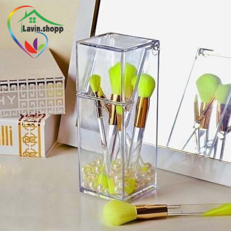 استند براش لاکچری محصولی است بسیار خاص و همه پسند. این محصول یک استوانه پلاستکی (آکرولیک درجه یک) می باشد که به کمک یک درب کوچک به راحتی باز می شود. گنجایش این استند در حدود 10 الی 12 عدد براش (با قطر دسته معمولی) می باشد و انصافا کیفیت بالایی دارد. اگر همیشه از بهم ریخته بودن میز آرایشی تان گله مند هستید به شما استفاده از این محصول و محصولات مشابه را پیشنهاد می کنیم