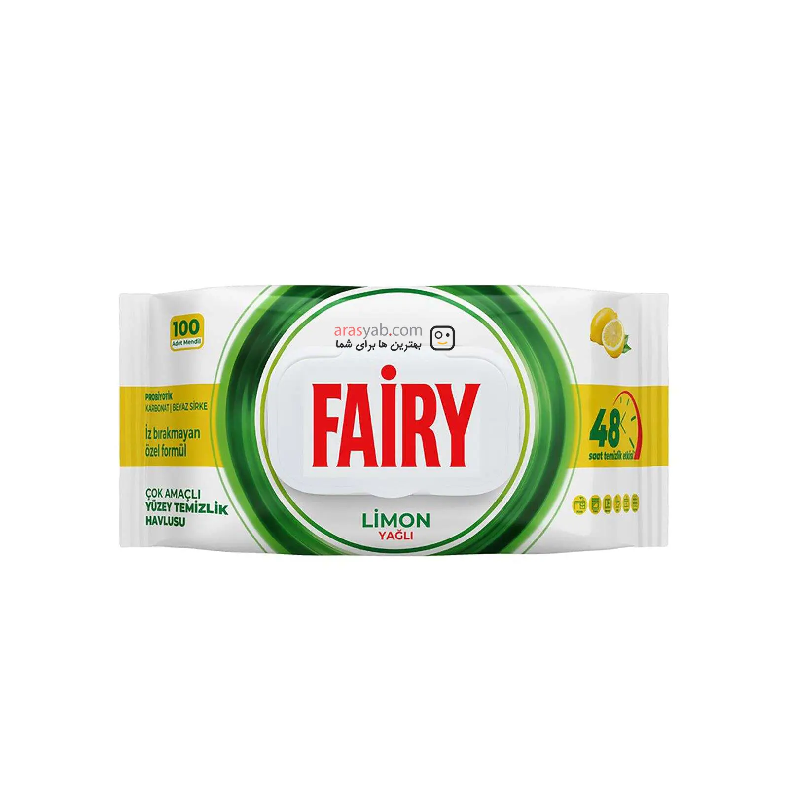 دستمال مرطوب سطوح فیری Fairy بسته 100 عددی از سری محصولات فیری اصل ترکیه